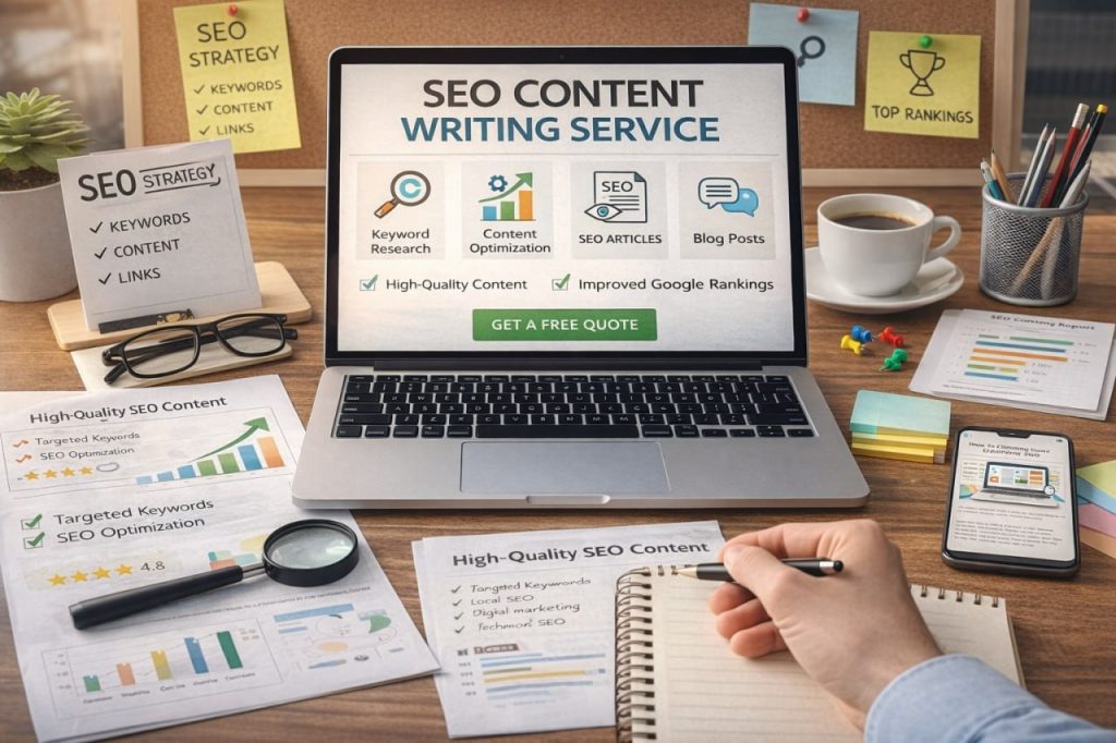 SEO content writing service involves creating optimized content that ranks in search engines and converts visitors into customers.